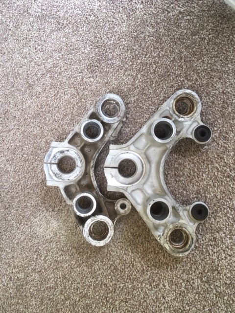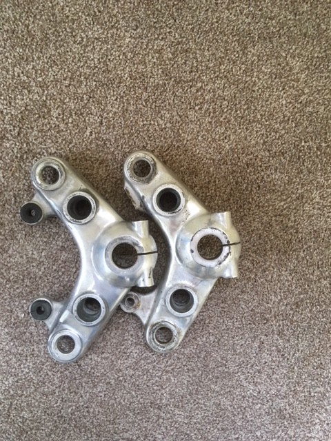 Listings don't make these things clear, currently DK has a smaller yoke (but sadly no instrument mounts) listed as '69 on', and one of the larger ones which purports to fit 68-69, but not mine. This is possibly K1 only. Later (k3 on) they went to a 'full size' hole for the upper fork leg, rather than a taper into a smaller hole which the top bolt goes through.