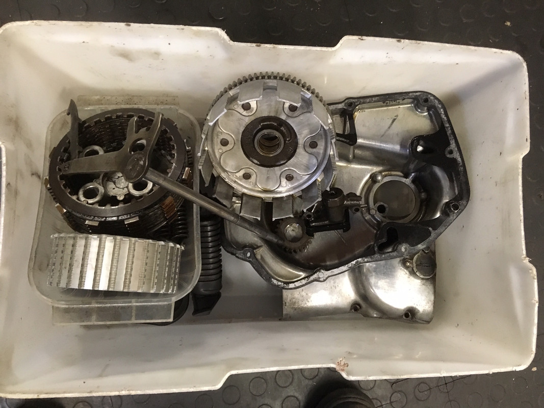 Ashley may recognize the box I'm using to keep the bits together, I think its the one he sent me a CB750 crank in. Note the condition of the clutch parts, something else that points to this bike having done a stupidly low mileage.