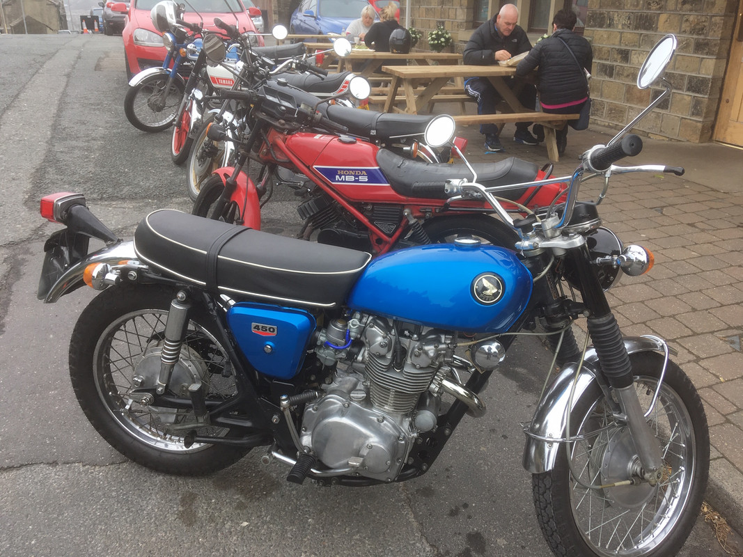 The sun was out today (rare in Manchestershire) so I took the CL450 out to Mossley, to buy excellent home made steak pie and chips from Alan & Viv's chippy, not because I needed to, but because I could The bike sang as it whizzed along and I had a big smile, it suddenly makes all those hours and £s I spent resurrecting another abandoned bike well worth it.Parked up outside Mossley station: