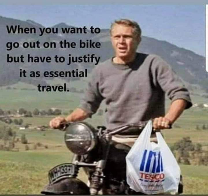 I might take the wife out on the Sportster tomorrow - sadly she's not a fan of pillion on the CL, she doesn't like the small seat and the lack of a grabrail. Her ankle got twisted gardening (!) so no more long walks for now - going lame out on the moors is not an option. What I'll miss about a ride out is somewhere to go to - usually there is food, an attraction or a drink at the other end, so I guess it will have to be a circular tour instead.