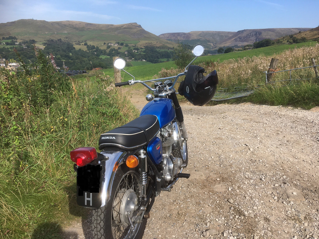 Here's the CL450 out on the local back lanes last week. Dovestones and Pots & Pans are in the background.